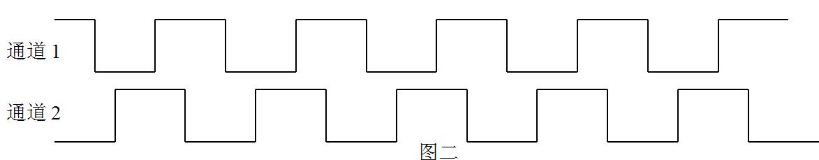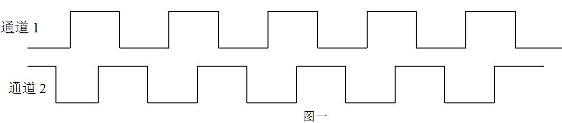 按 本說明書四中應用示例安裝,當旋轉(zhuǎn)方向如圖四所示定義為正轉(zhuǎn),輸出波形為通道1超前通道2 90度,波形示意圖如下所示: